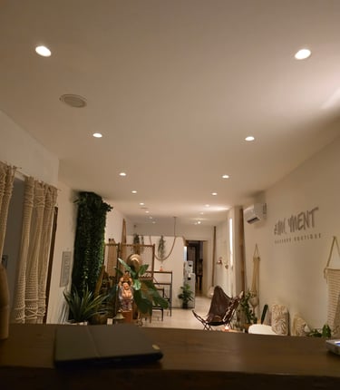 The Moment is a minimalist massage boutique in the heart of Athens, created for those who value quality, authenticity, and calm. Designed with clean lines, natural materials, and warm neutral tones, the space reflects a modern urban aesthetic inspired by Southeast Asian wellness traditions. Every detail is intentional—quiet, uncluttered, and deeply soothing.